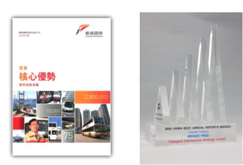 載通國際控股2008年年報除了匯報過去一年業績的詳情,以及企業的各類財務資料外,更主動增加透明度,向股東提供有關企業管治方面的詳盡資料,令公眾更清楚集團的專業管理及內部監控的系統;同時更透過輕鬆的答問環節,帶出集團未來的發展策略及路向。載通國際是次獲獎,代表了其年報在設計、內容及報導形式等多方面皆獲得評審團的嘉許。